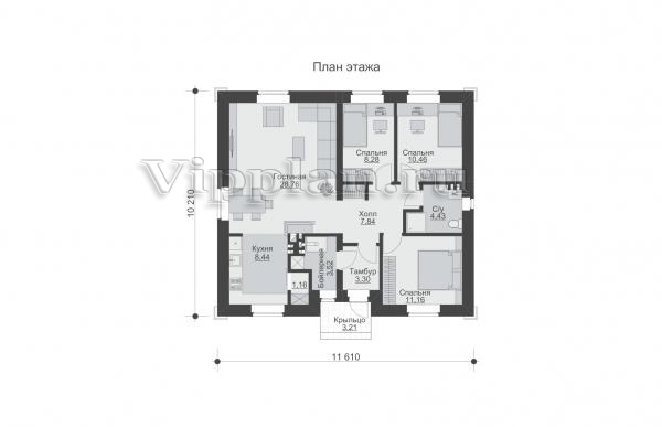 | Размеры дома: | 11.61м×10.21м |